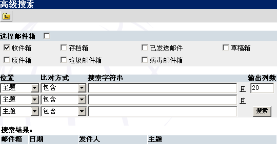 选择你要搜索的邮件箱。如果点击“选择邮件箱”右边的选取框,则全部邮件箱均被选定。