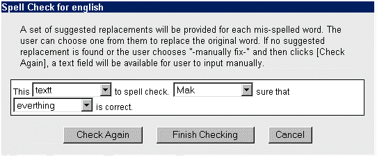 你在本文框里要撰写邮件。一旦你已经完成你的邮件了,你可能想要确认有没有拼写错误。不管怎样,经常这样做,是很令人厌烦的。很幸运地,Open Webmail内建了相当不错的拼写检查功能。只要选择你想要使用的字典(English,or American),然后点击“拼写检查”。这样就会开启新的窗口执行拼写检查。